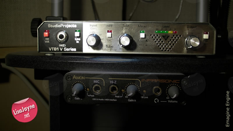The pre-amp in Lisa Jayne’s voice-over recording studio is the Studio Projects VTB1.