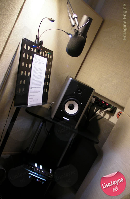 Lisa Jayne records within an acoustically-treated voice-over recording studio. Stonewool Acoustic Panels cover the walls and ceiling of the studio and the interior of Lisa Jayne’s vocal booth, which is open on top.
